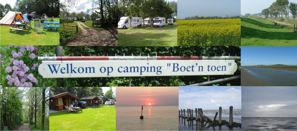 ![]() Welkom op camping Boetn ToenOnline reserveringen en vragen per mail worden beantwoord. Midden in het dorp Pieterburen, op steenworp afstand van de Waddenzee, ligt de kleine, gezellige camping Boetn Toen. U wordt opgevangen door gastvrije vrijwilligers die het (Nederlandse) waddengebied een warm hart toedragen. Licht, veel ruimte en rust, prachtige vergezichten en heerlijke lucht kenmerken onze omgeving, waar van alles te doen is: wadlopen, wandelen, kanoën of fietsen. Maar ook cultureel en historisch is hier veel te ontdekken, zoals bijzondere tuinen, musea, kerken, kastelen en oude molens. Kom ook bij ons kamperen! U bent van harte welkom met uw tent, vouwwagen, caravan of camper. Ook verhuren wij diverse twee- en vierpersoons accommodaties: blokhutten, huurcaravans en een stacaravan. Wij hopen u te kunnen begroeten tijdens het (komende) kampeerseizoen. hoofdstraat 76A I 9968 ag pieterburen I T (06) 5702 2690 I boetntoen@outlook.com I kvk 72310065 I btw nr NL859068328.B01 I iban nl55rabo0332070999 |